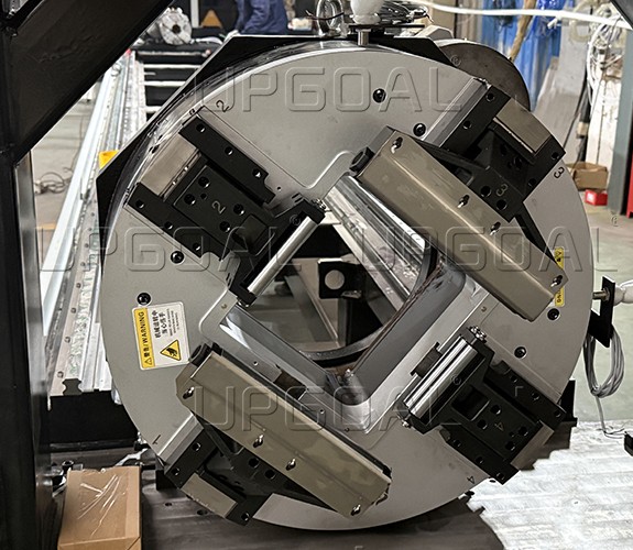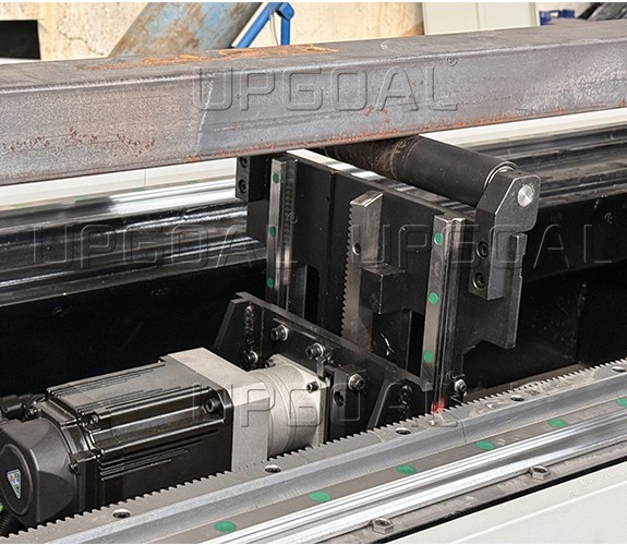 2. High precision fully automatic chuck adopts dual pneumatic mode to automatically fix the pipe to avoid possible displacement during the cutting process and ensure cutting accuracy. Clamping diameter 245mm, cutting length 6000mm.